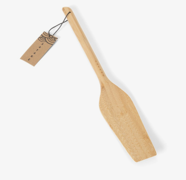 Eleganta spatel i bambu är ett mångsidigt redskap för dig som uppskattar hantverk och känsla i köket. Med sin mjuka form fungerar den lika väl som palett för att temperera och hantera choklad, som en delikat stekspade för att vända till exempel fisk eller små pannkakor.