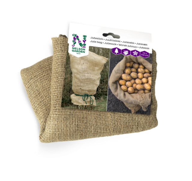 Jutesäck för övertäckning av växter. Skyddar mot såväl frost och snö som stark sol, men även mot uttorkning om våren. Kan även användas som krukskydd, vedsäck, förvaring av grönsaker och tomtesäck till jul. 70 x 110 cm