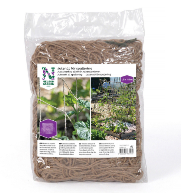 Jutenät är en hållbar och miljövänlig lösning för växter som behöver klättringsstöd som bönor, luktärter och krasse. Detta nät går enkelt att fästa på diverse stöd såsom pinnar, käppar eller en stege, vilket gör det till ett mångsidigt verktyg i trädgården. Nätet är tillverkat av naturlig jute som är biologiskt nedbrytbart och kan komposteras efter säsongen.