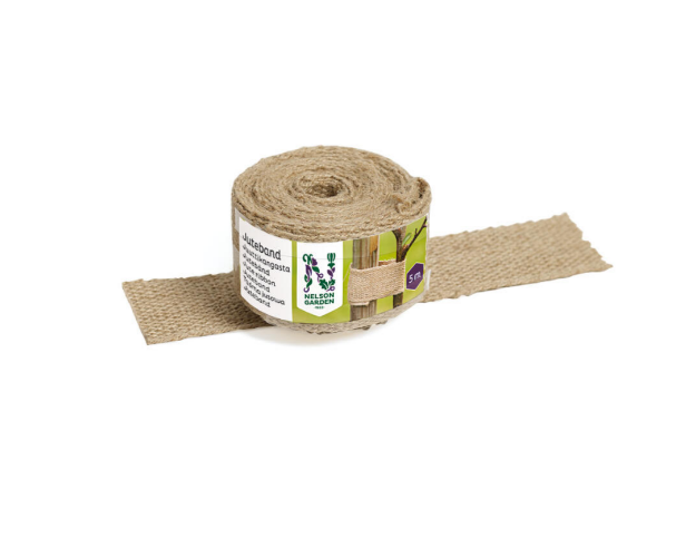 Ett brett juteband är en dekorativ och skonsam lösning för att skydda växterna. Knyt det gärna tillsammans med ull kring växterna för bästa möjliga skydd. Med en bredd på 6 cm blir uppbindningen stabil och pålitlig.